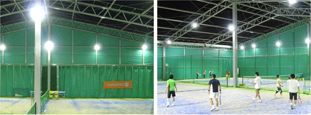 大阪府枚方市/テニス場。コート2面で24個を使ってテニスコート、LEDライト完成