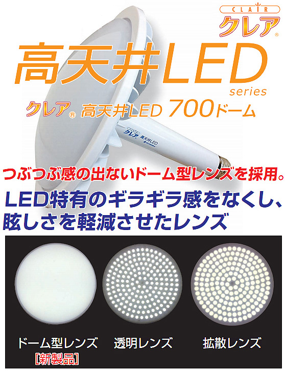 高天井LED/ドーム型グレア防止レンズ