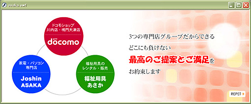 あさか電器株式会社様よりご依頼を頂きました。誠にありがとうございます。スライドショー型のFLASH制作です。(制作期間の目安:10~15日)