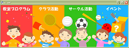 徳島県石井町、ウィンナークラブ様のトップページFLASHを制作させて頂きました。写真とイラストを使用した明るく楽しいイメージのデザインに。写真データをお送り頂きましてありがとうございました。(制作期間の目安:13~18日)