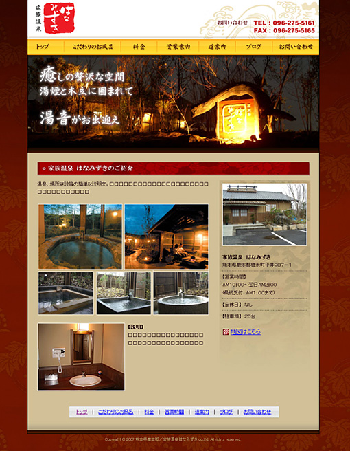 制作実績/落ち着いた和風デザイン/温泉施設のホームページ制作