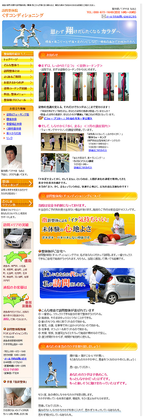 整体院様の場合は、探す手段が電話帳という事が多くなっているので、詳細をダイレクトに伝える事ができるインターネット、ホームページは宣伝、ビジネスとして、非常に有効なツールといえます。
