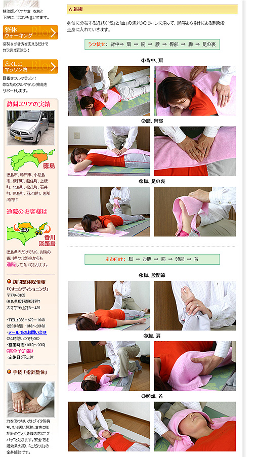 はじめてご依頼される方にも施術内容がよく分かるように写真をいくつか撮影させて頂きました。徳島県在住の方で、整体院をご利用されたい方におすすめの整体院様です。