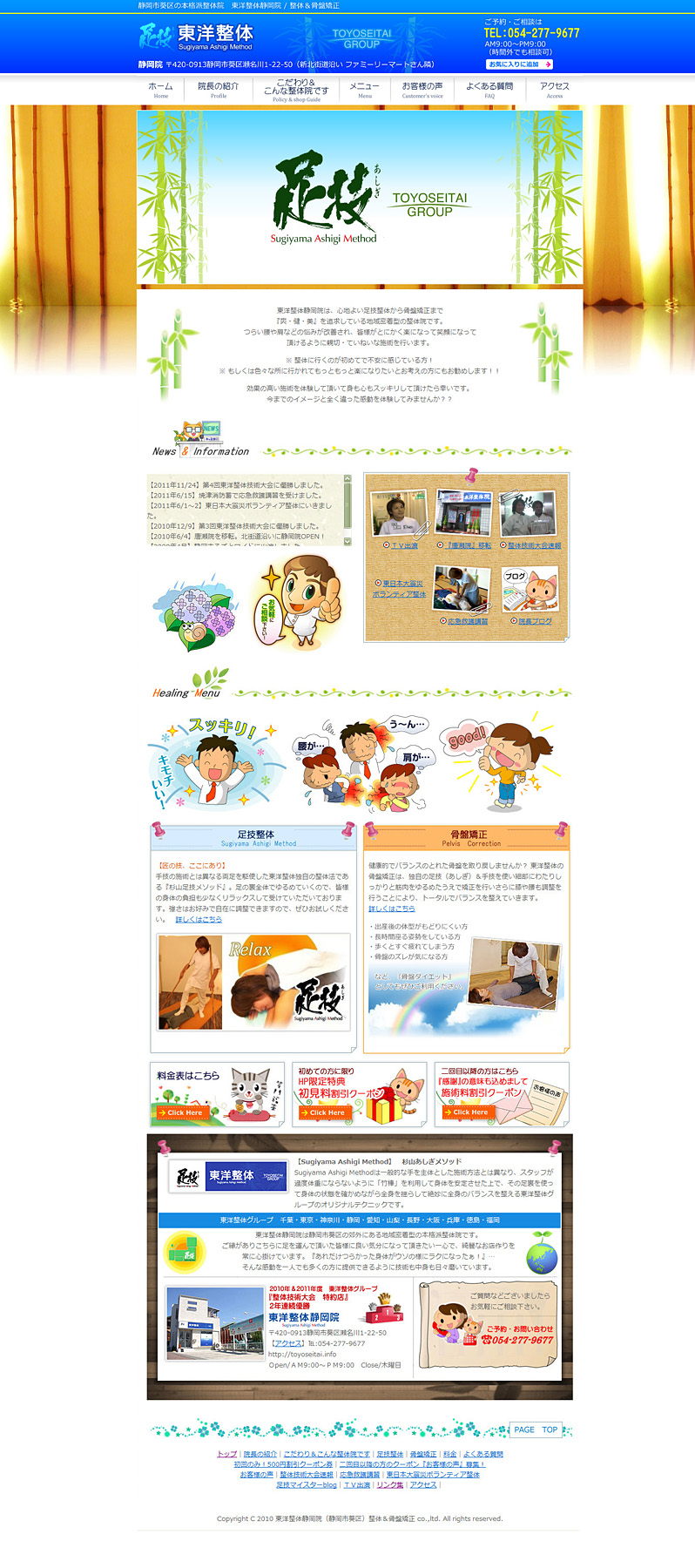 静岡県で整体院をされている方よりホームページリニューアルを頂きました。以前のホームページよりも洗練され、見やすく、はじめて気軽に来れるイメージのデザインになりました。資料をたくさんご用意頂きありがとうございました。