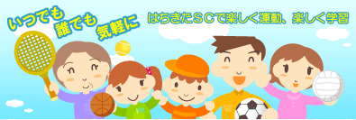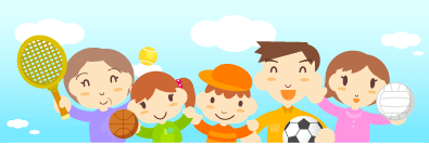 最後に、子ども、大人、お年寄りのイラストを表示させます。そして、「いつでも、誰でも、気軽に」、「楽しく運動、楽しく学習」という言葉を入れ、