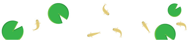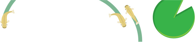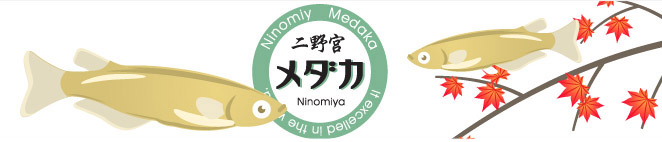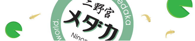 ロゴの淵になる部分をメダカが泳いでいきます。