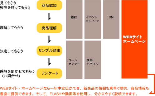 ・他ホームページとの違いを出せるFLASH等の斬新なメディア展開でブランドをアピール。