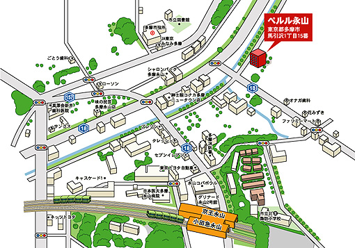 イラストマップ作成のご依頼を頂きました。小さめの範囲、大きめの範囲、2つのご依頼をありがとうございました。建物や駅を立体的に入れるとより線だけの地図よりも、非常に分かりやすくなりました。緑も周りにおくと色合いもよくなります。