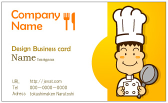 イラストは、柔らかく明るいイメージを与えることができますし、デザイン込みで2万3000円~と、大変お得なお値段となっております。「男のコックさんが、にっこり笑ったイラストの入った名刺を作成してほしい。」というようなご依頼の仕方で結構です。