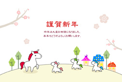 イラストを使用や写真をしようして制作します。例として年賀状のポストカードを掲載していますが、このような色鮮やかなデザインにすれば、ダイレクトメールを送る際、見栄えもし、目立つので良いと思います。