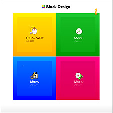 企業(会社)/ビジネス/デザインサンプル企業(会社)向けのグリッドで区切ったようなレイアウトのホームページデザインサンプルです。こちらのような四角い形をたくさん使用しているホームページを作成する場合はテーブルなどで作成する方が無難です。 文字の周りに余白をやや大目にとっているのでゆったりしたイメージのデザインとなっております。メインの画像を大きくとることで、迫力が出てきます。 |
