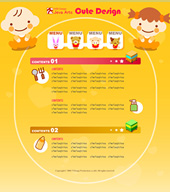 温かいオレンジ色の優しいイメージのホームページです。子ども向け、幼稚園や保育園、ベビー等、イラストを作成し、かわいいデザインに制作しました。角を丸くし柔らかく。 |