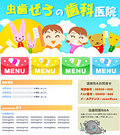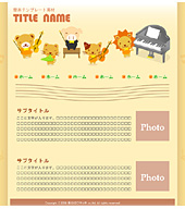 子ども向けの動物のイラストとお子様のイラストを入れたかわいいホームページ制作サンプルです。FLASHアニメーションを入れるともっとかわいいイメージになります。 |
