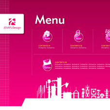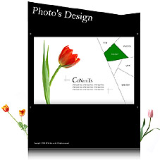 企業関連のホームページ。カテゴリーを見や すくコンテンツごとに縦3段にしています。大きく ビジュアルをとって印象を強くし、洗練された イメージを伝えます。 |
