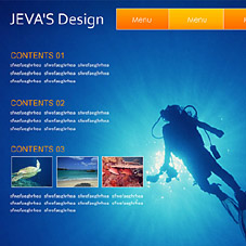 海/青い色を基調としたホームページ制作海、青い色を基調としたホームページデザインです。このデザインは、例としてスキューバーダイビングをイメージして作成しております。 青や紺色使用していますが、メニュー部分等に少し明るいオレンジ色を加えると全体的にホームページの印象が明るくなります。 |
